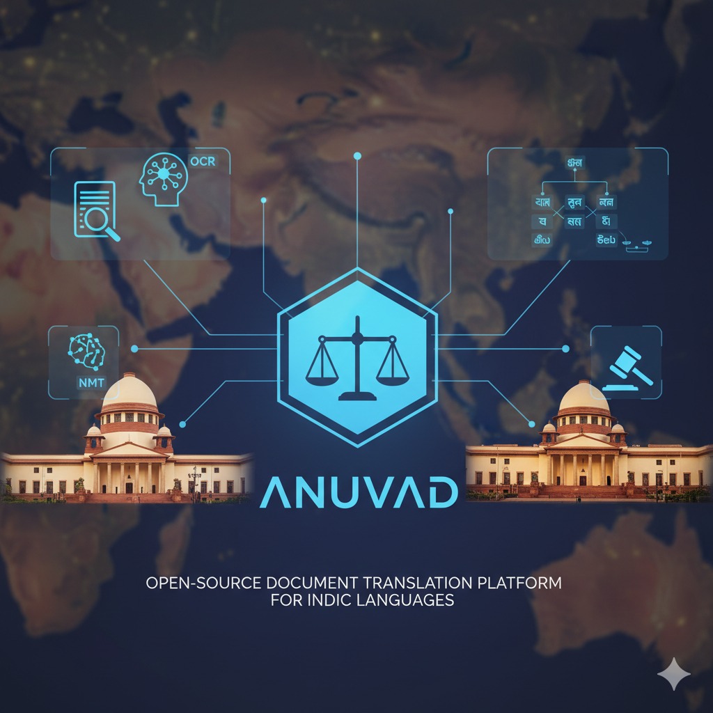Open-source document translation platform for Indic languages. It uses NMT, OCR, layout detection, etc., for legal documents; rolled out in Supreme Courts in India and Bangladesh.