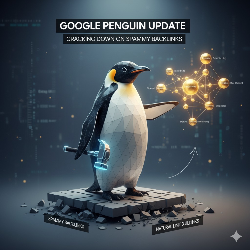SEO-defining project that cracked down on spammy backlinks, forcing the industry toward natural link-building.